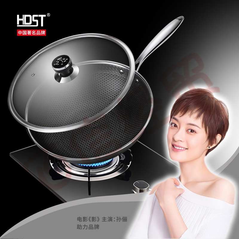 HDST 鋒釜 304不銹鋼不粘炒鍋 家用少油煙炒菜鍋具 帶溫度顯示可定時FF-20123 自營