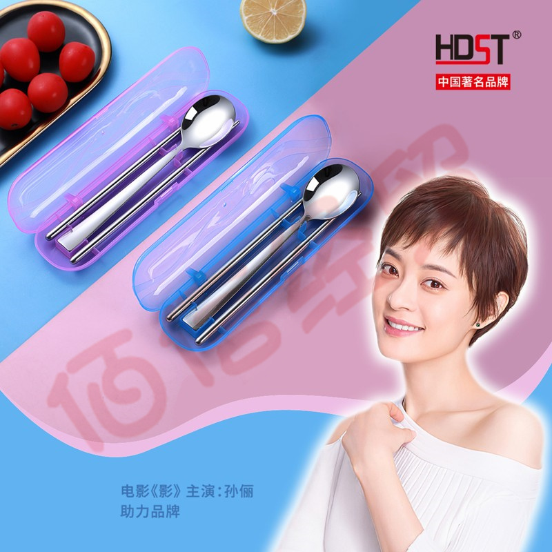 HDST 臻享 便攜餐具套裝 不銹鋼筷子勺子2件組成人學生旅行便攜禮盒裝 ZX-1915 紫色盒 自營