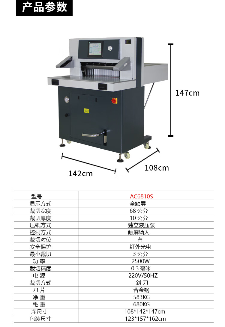 震旦AURORA 100mm雙液壓系統(tǒng)切紙機(jī)A3幅面大臺(tái)面10英寸觸屏 標(biāo)書(shū)文件裁紙機(jī)書(shū)籍檔案修邊切紙刀 AC6810S 自營(yíng)