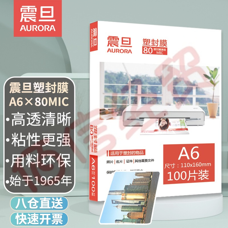 震旦AURORA A6-80MIC透明高清專用護卡膜/塑封膜110x160mm(100張/包) 自營