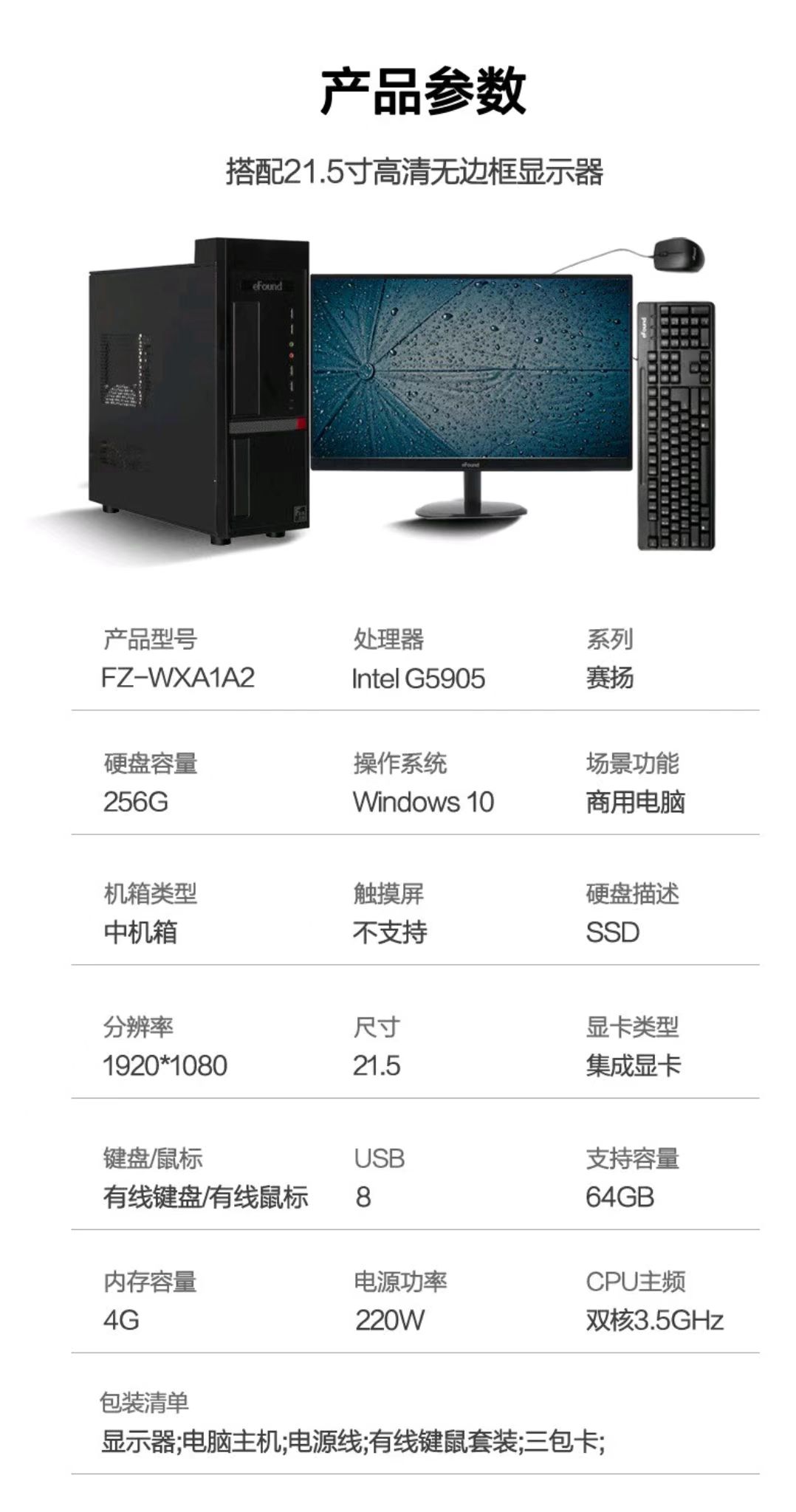 方正(eFound)文祥 臺(tái)式機(jī)FZ-WXA1A2英特爾G5905/4G/256SSD/21.5LED 自營(yíng)