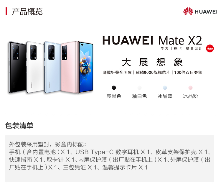 華為_HUAWEI_Mate_X2_麒麟9000旗艦芯片_超感知徠卡四攝_512GB冰晶藍(lán)_5G全網(wǎng)通華為手機(jī)_折疊屏(無充版) 自營