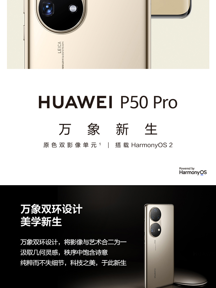 華為_HUAWEI_P50_Pro_原色雙影像單元_萬象雙環(huán)設(shè)計_HarmonyOS_2_支持66W快充_8GB+256GB曜金黑_華為手機(jī) 自營