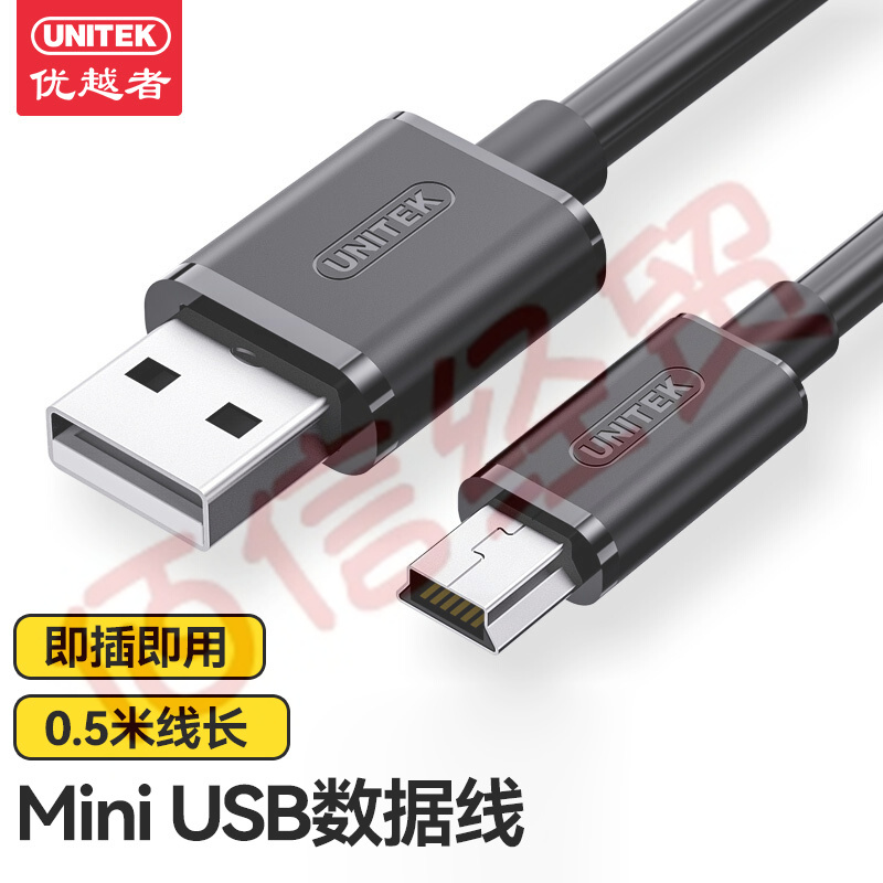 優(yōu)越者(UNITEK)Mini USB數(shù)據(jù)線T型口 移動硬盤/行車記錄儀線 相機平板mp3/mp4電源連接線 0.5米 C4002EBK 自營