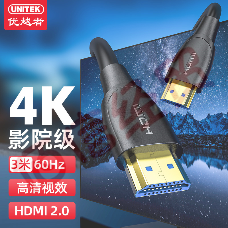 優(yōu)越者 (UNITEK)HDMI線2.0版 電視盒子機(jī)頂盒顯示器視頻線 4K/3D數(shù)字電腦連接線 3米 C1040BK 自營