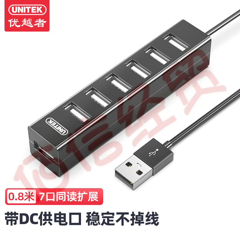 優(yōu)越者(UNITEK)usb分線(xiàn)器一拖七 高速拓展7口2.0HUB集線(xiàn)器 多接口擴(kuò)展塢 0.8米Y-2160BK 自營(yíng)