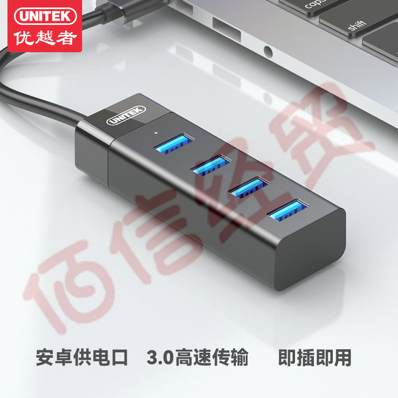 優(yōu)越者(UNITEK)USB分線器3.0高速4口擴展塢筆記本臺式電腦一拖四hub集線器usb延長線0.3米帶供電口 Y-3098ABK 自營