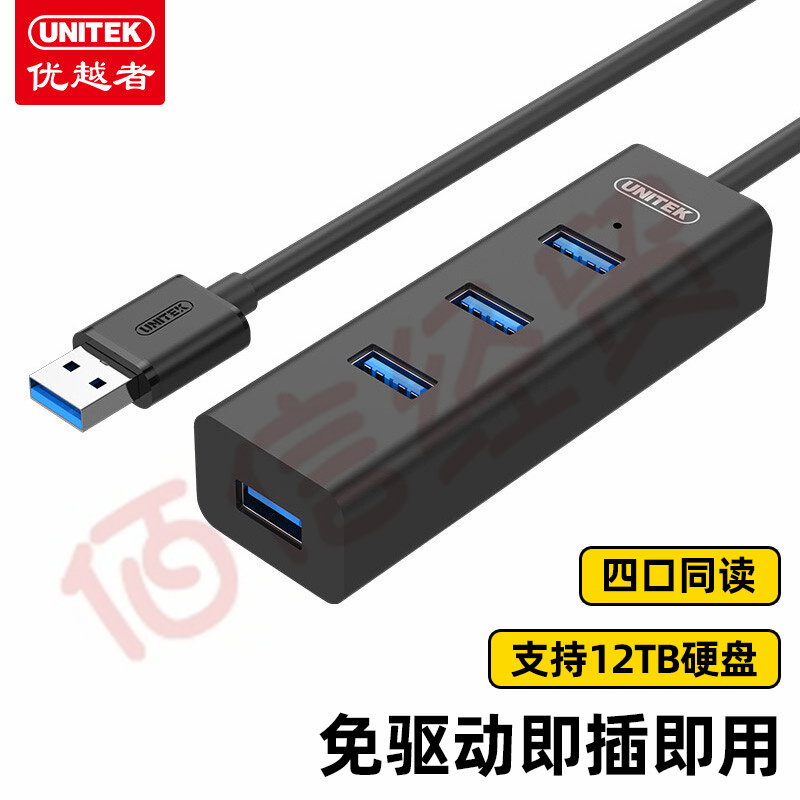 優(yōu)越者 usb3.0分線器 高速4口拓展器 筆記本電腦一拖四轉(zhuǎn)換器多接口延長線帶電源口 黑色 2米 Y-3089KBK 自營