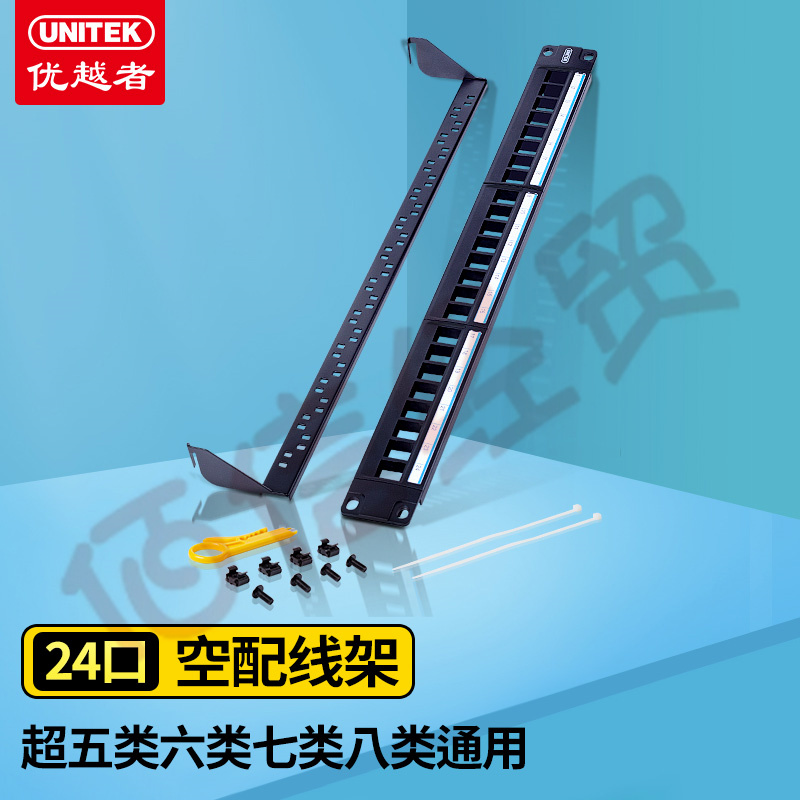 優(yōu)越者(UNITEK)配線架空架 超五類六類七類網(wǎng)絡(luò)模塊 24口屏蔽網(wǎng)線電話配線架 模塊免打插座空配線架T019A 自營(yíng)