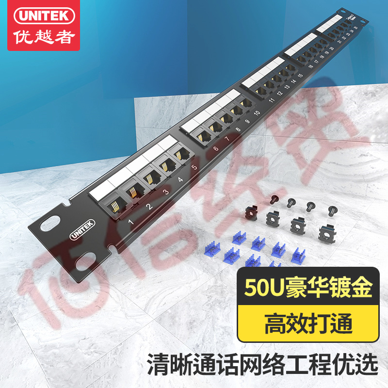 優(yōu)越者(UNITEK)25口語音電話配線架 50U鍍金高端工程模塊 1U機架模塊式 OT27BK 自營