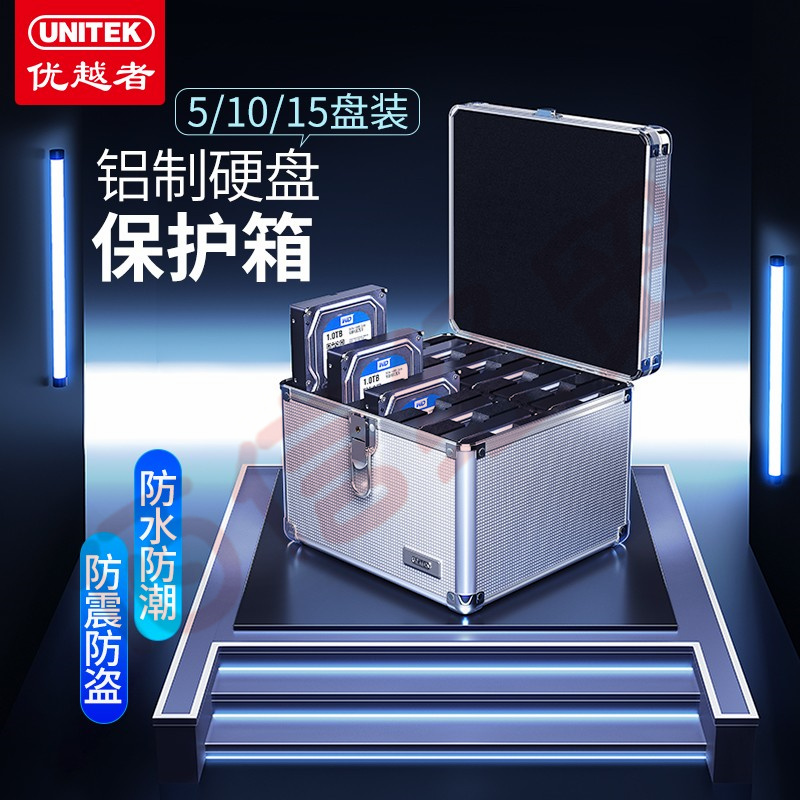 優(yōu)越者 (UNITEK)2.5/3.5英寸硬盤保護(hù)箱 5粒手提式保護(hù)收納盒 防水/防盜/防潮/防震 銀色 OT32SL 自營(yíng)