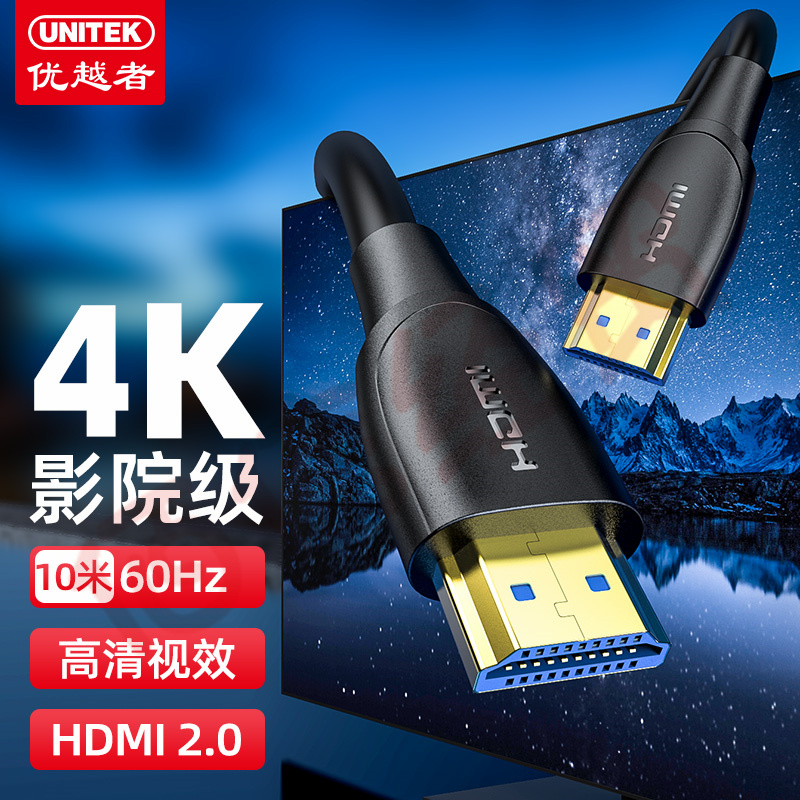 優(yōu)越者 (UNITEK)HDMI線2.0版 電視盒子機(jī)頂盒顯示器視頻線 4K/3D數(shù)字電腦連接線 10米 C1043BK 自營
