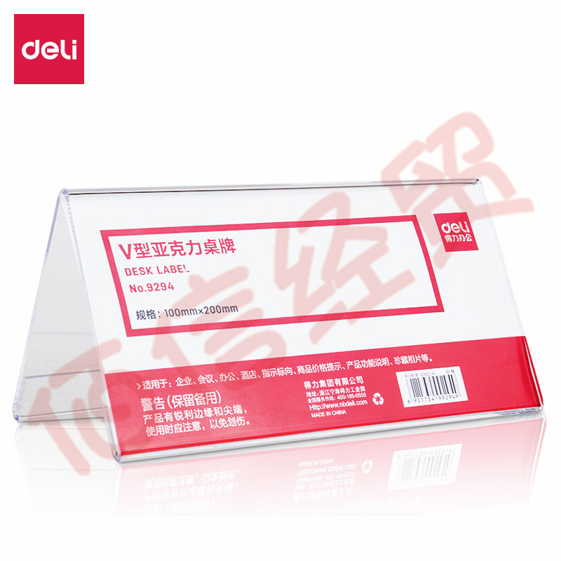 得力(deli)9294 V型10*20cm亞克力桌牌展示牌 雙面透明 自營(yíng)
