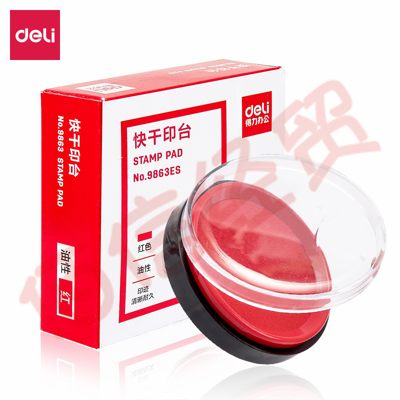 ¥8.70得力(deli)9863-φ80mm透明圓形財(cái)務(wù)快干印臺(tái)印泥 辦公用品 紅色