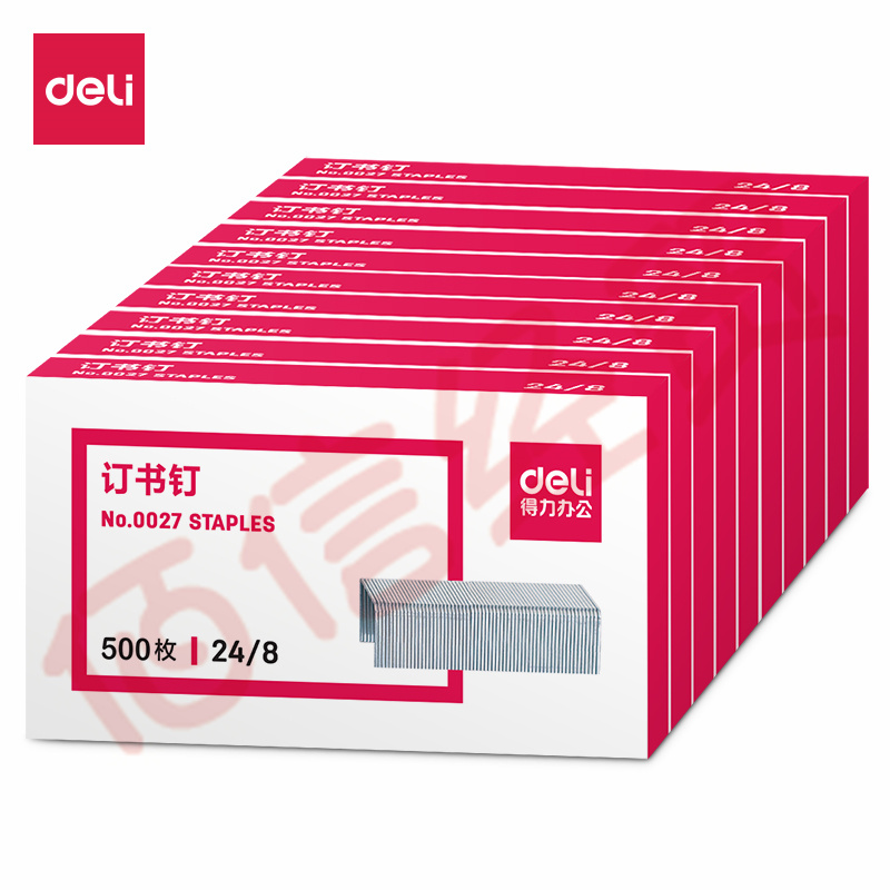 得力(deli)24/8加厚訂書釘/訂書針 500枚一盒 10盒裝 辦公用品 0027 自營
