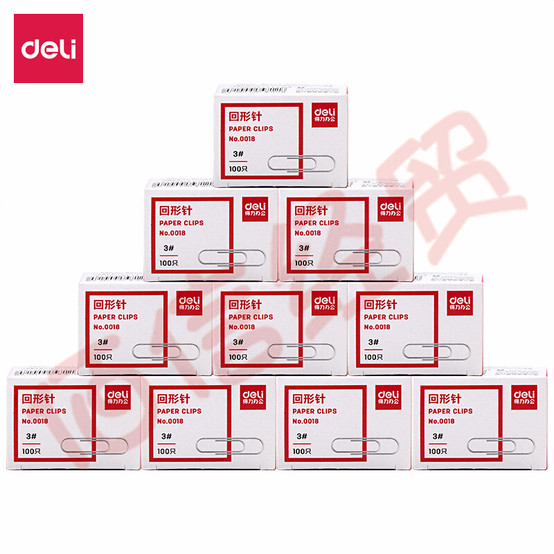 得力(deli)3#金屬回形針 鍍鎳防銹曲別針 100枚/盒 10盒裝 辦公用品 0018 自營