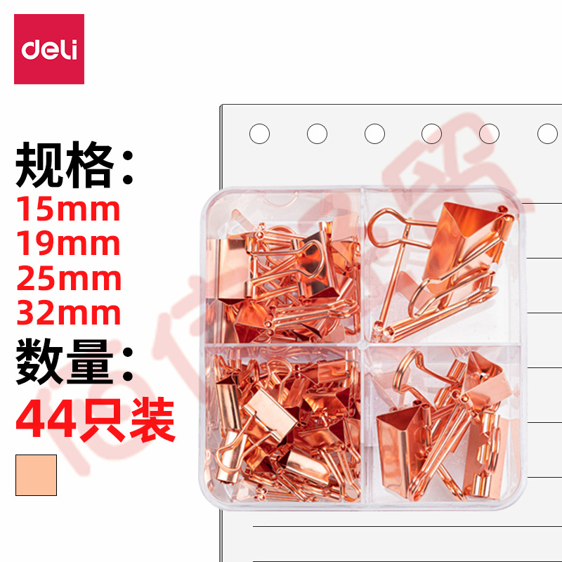 得力(deli)44只組合裝玫瑰金長(zhǎng)尾夾/燕尾夾/票夾/文件夾(32mm*2只+25mm*5只+19mm*12只+15mm*25只) 78205 自營(yíng)