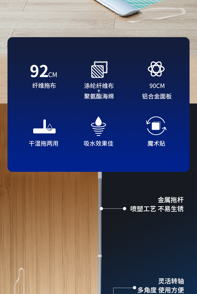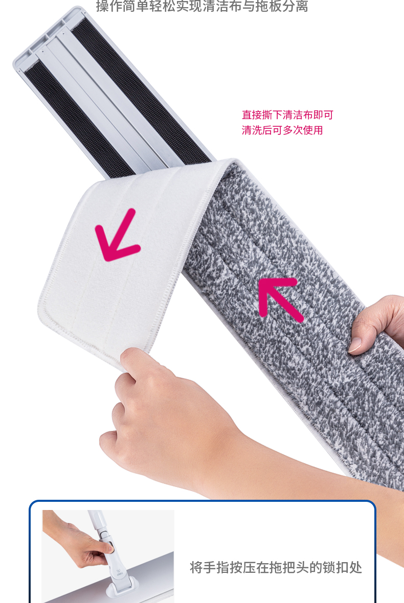 美麗雅 經(jīng)典平板拖把夾布地拖 干濕兩用木地板墩布 共2張拖把替換布