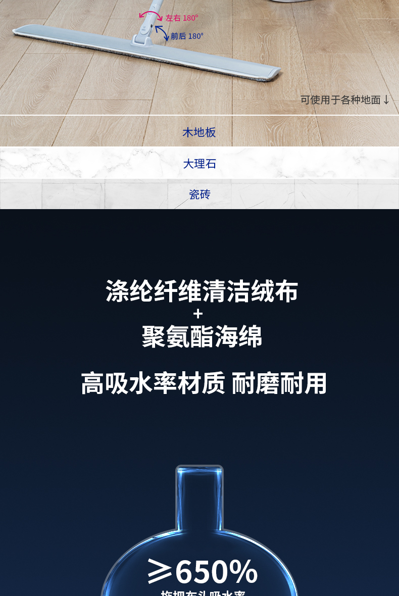 美麗雅 拖把免手洗 平板拖把懶人拖把大號(hào)吸水木地板拖把家用拖地神器墩布拖把共3張拖布(6個(gè)/箱)