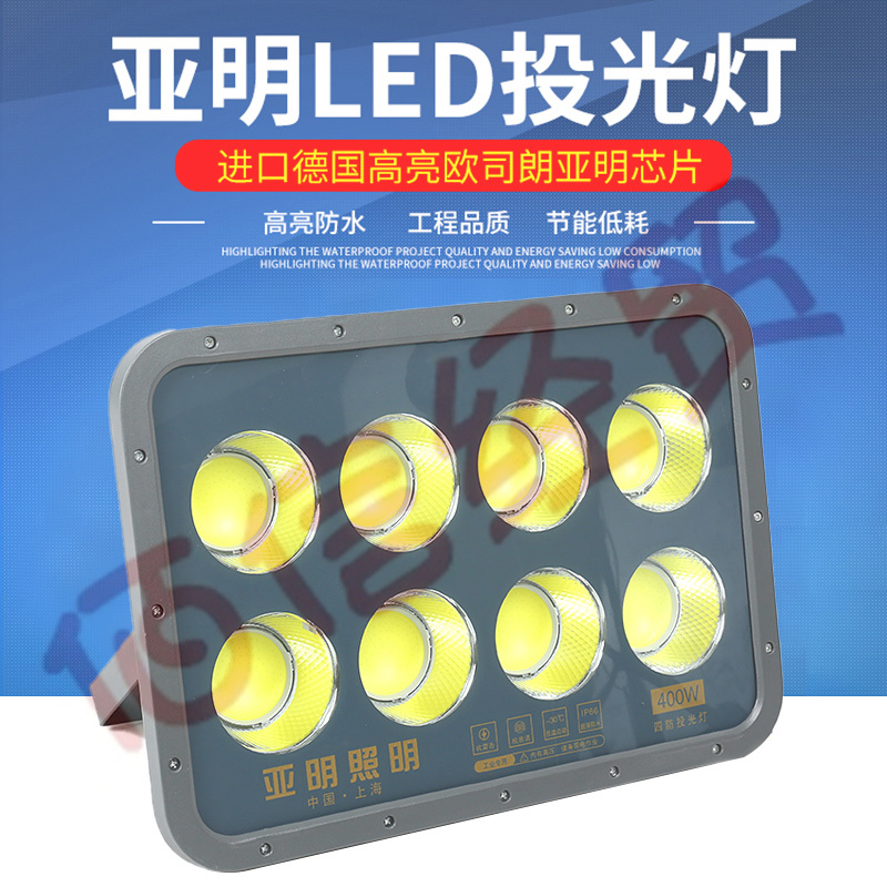 亞明照明 LED投光燈聚光燈大功率射燈 戶外防水超亮廣告工地照明燈廣場倉庫廠房球場室外泛光燈 高亮款 400W 自營