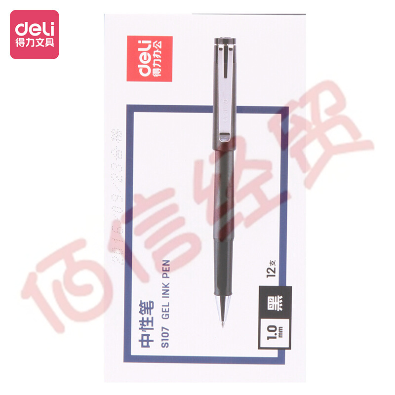 得力(deli)中性筆簽字筆 1.0mm子彈頭辦公水筆 加粗線幅水筆 黑色12支/盒S107 自營