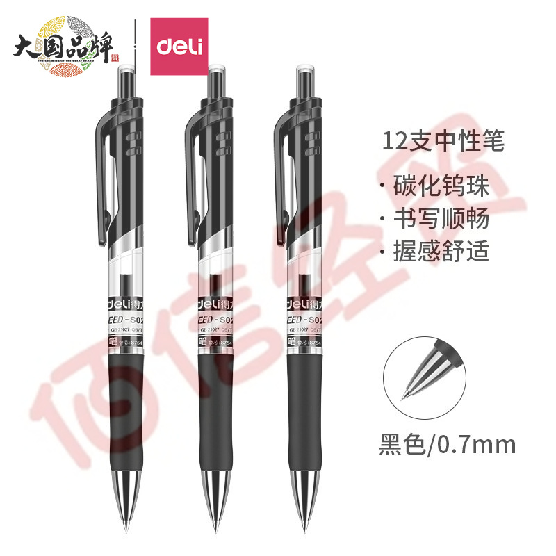 得力(deli)中性筆簽字筆 0.7mm子彈頭按動筆水筆 辦公用品 黑色 12支/盒 S02 自營