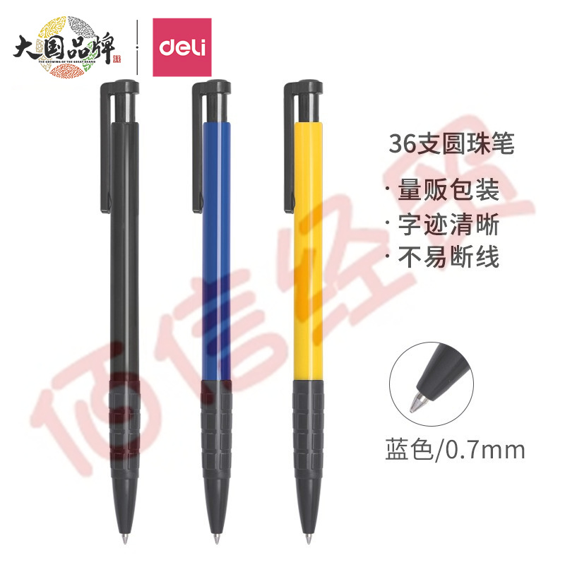 得力(deli)圓珠筆中油筆 0.7mm子彈頭軟膠握手原子筆按動筆 辦公用品 藍色 36支/盒 6546 自營