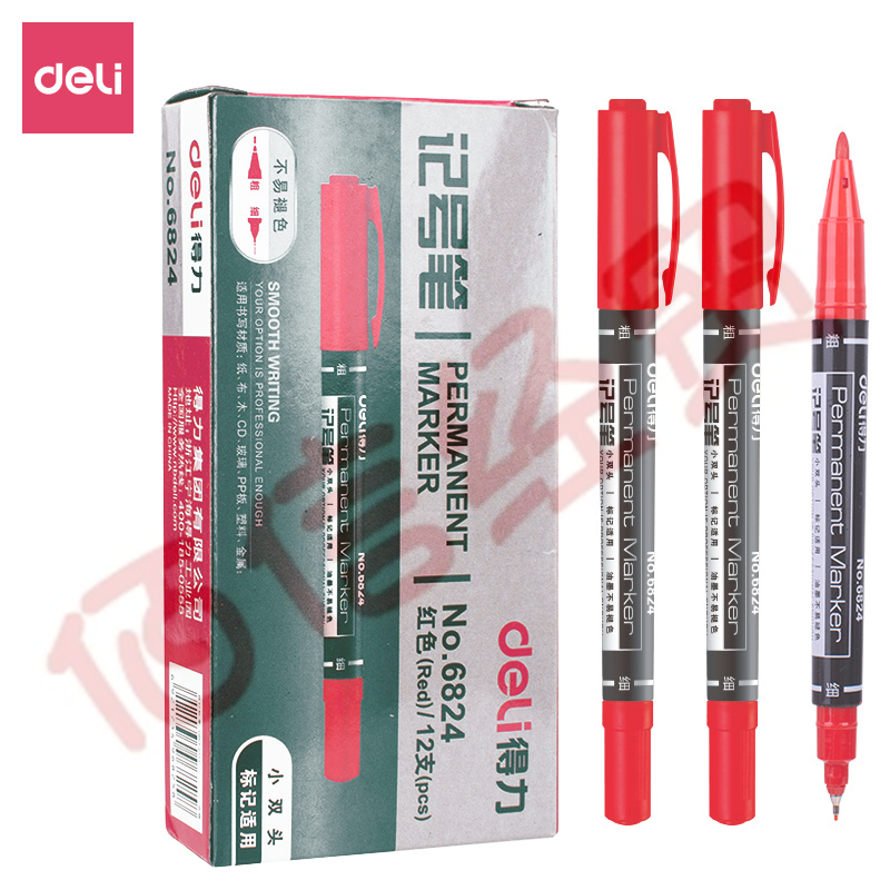 得力(deli) 雙頭勾線記號筆 油性馬克筆勾線筆簽字筆辦公記號筆 12支裝 6824紅色 自營