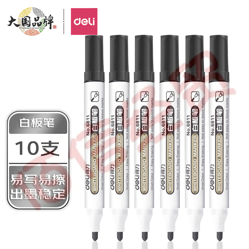 得力(deli)辦公會議白板筆 可擦易擦黑色 10支/盒6811 自營