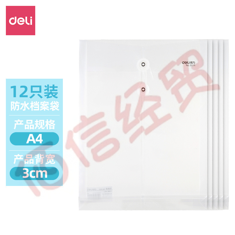 得力(deli)-12只-A4-加厚防水透明文件袋資料袋繞繩檔案袋 綁帶式票據(jù)試卷收納袋 學(xué)科分類5511 自營