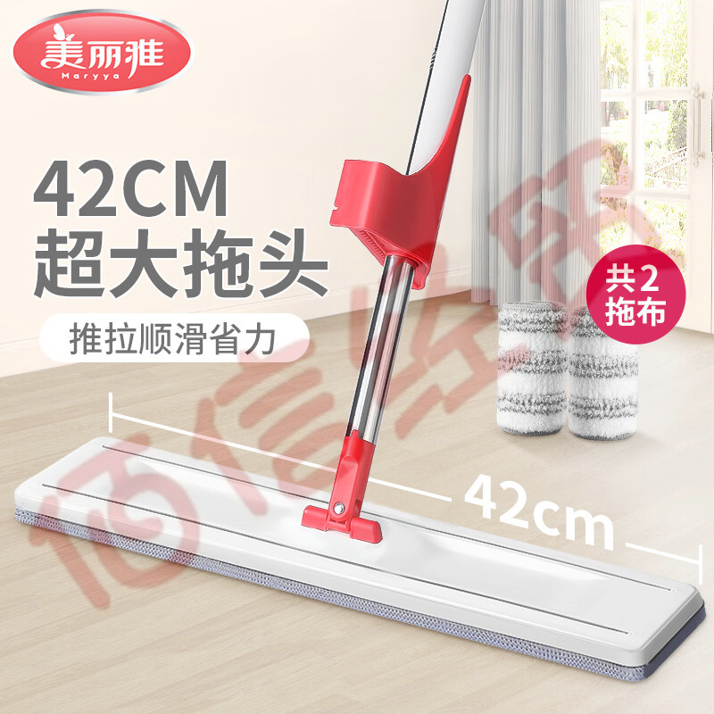 美麗雅 免手洗平板拖把 拖把家用一拖凈 省力拖把辦公室木地板物業(yè)拖地加大42cm拖頭 共2替換布 自營(yíng)