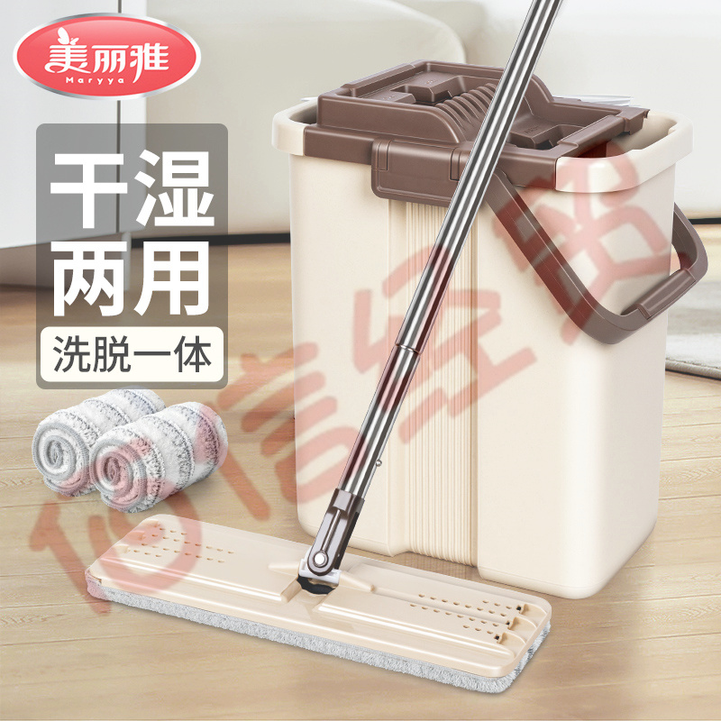 美麗雅 拖把 免手洗 平板拖把 大號 懶人拖地神器拖布家用干濕兩用省力刮刮桶墩布吸水 共2張拖布 自營