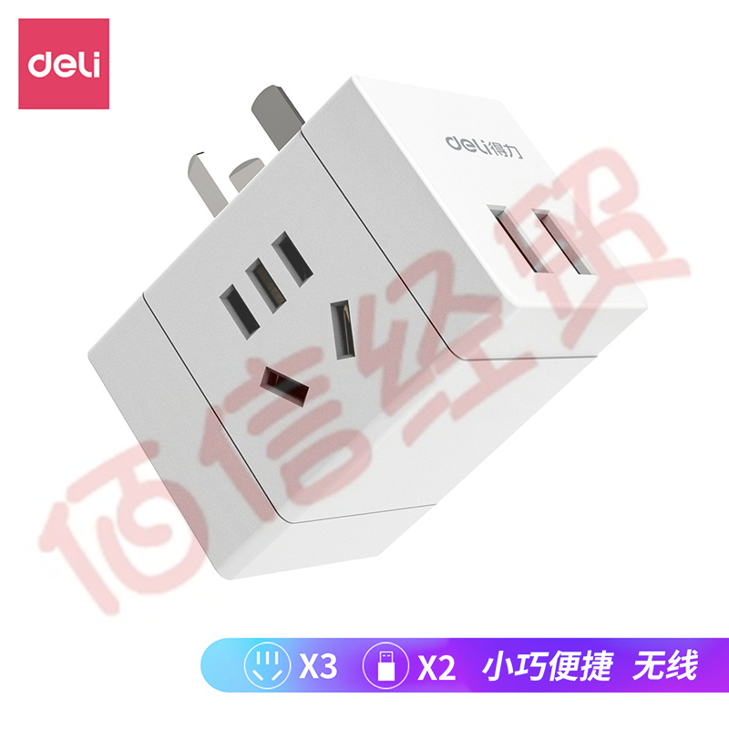 得力(deli)魔方智能USB插座 3孔+2USB 無線白色魔方 33636 自營