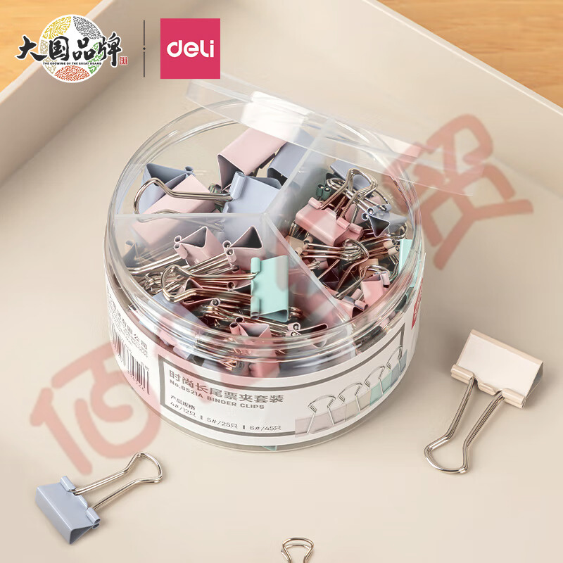 得力(deli)-82只-莫蘭迪色多規(guī)格長(zhǎng)尾夾(25mm*12只+19mm*25只+15mm*45只)-8521A 自營(yíng)