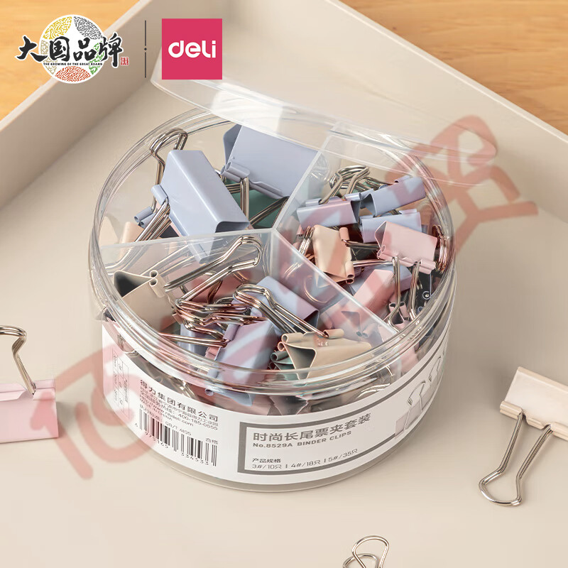 得力(deli)-63只-莫蘭迪色多規(guī)格長尾夾-(32mm10只+25mm18只+19mm35只)-8529A 自營