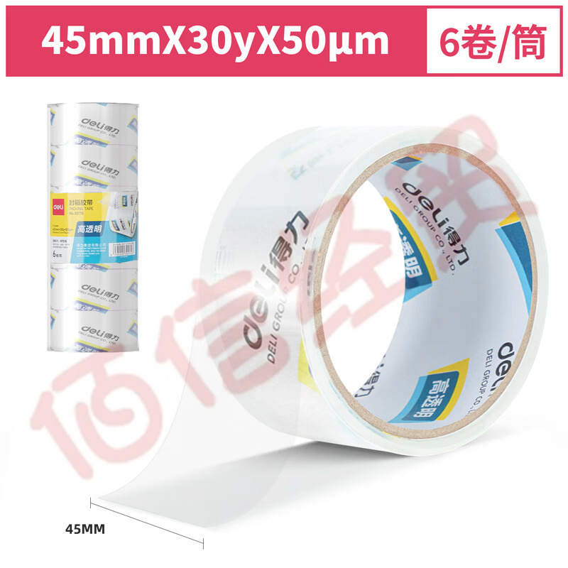得力(deli) 高品質(zhì)高透明封箱膠帶打包膠帶 45mm*30y*50um 6卷/筒 辦公用品 30170 自營