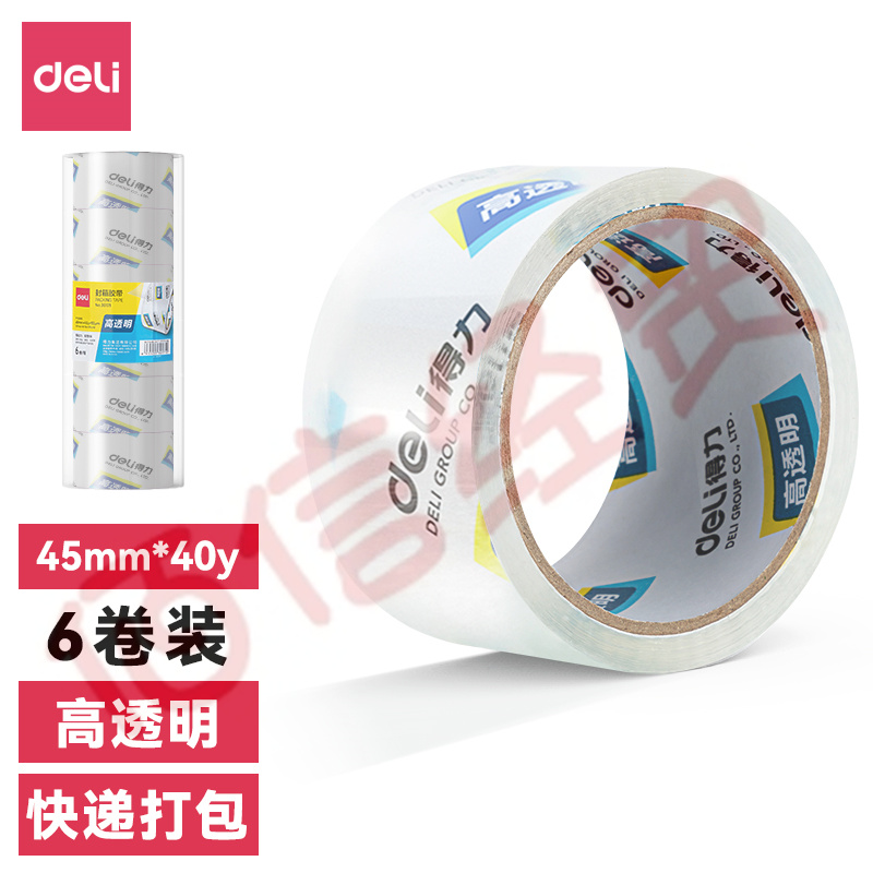 得力(deli) 高品質(zhì)高透明封箱膠帶打包膠帶 45mm*40y*50um 6卷/筒 辦公用品 30171 自營