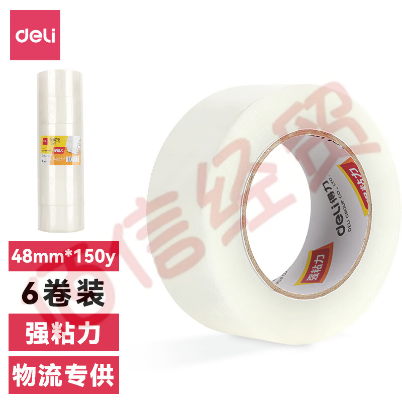 得力(deli) 普透明封箱膠帶 快遞物流打包膠布 45mm*150y*45um(6卷/筒) 30184 自營
