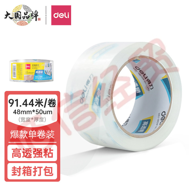 得力(deli)高品質(zhì)高透明封箱膠帶打包膠帶 48mm*100y*50um(91.4m/卷) 1卷裝 辦公用品 30248 自營
