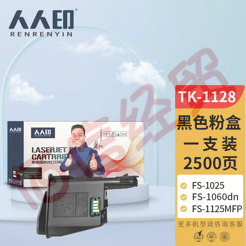 人人印 TK-1128墨粉盒適用京瓷 Kyocera FS-1060dn/FS-1025/FS-1125MFP復印機碳粉 黑色1支裝 自營