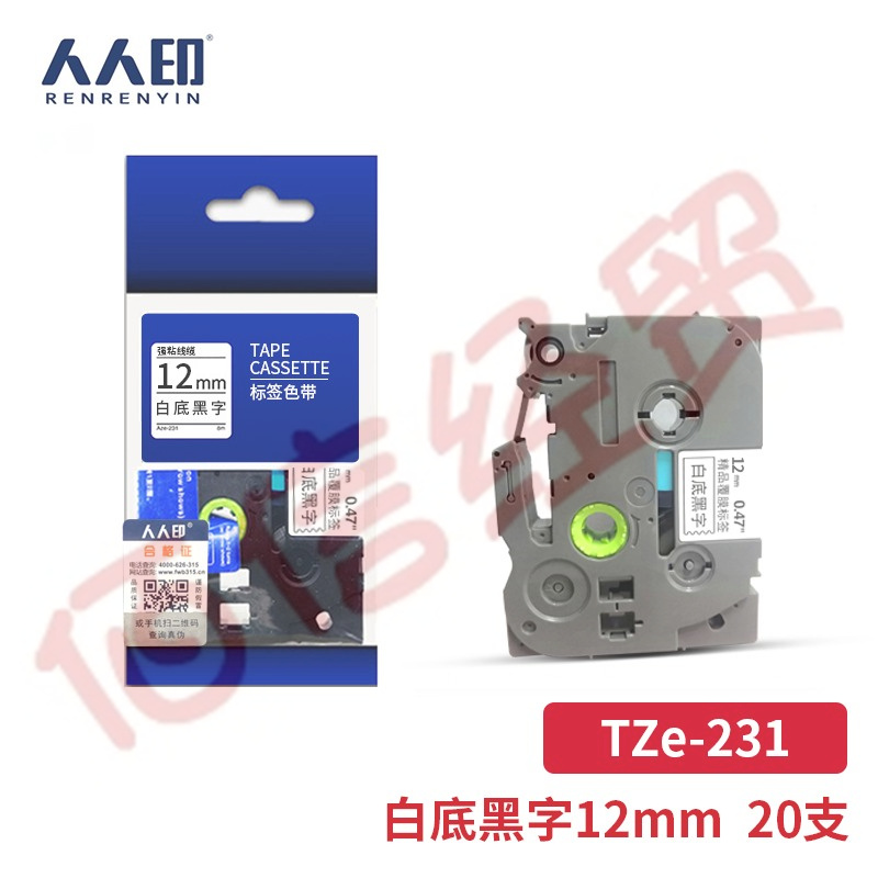 人人印標(biāo)簽帶 12mm白底黑字TZe-231 20支裝標(biāo)簽色帶適用兄弟標(biāo)簽打印機(jī)PT-D210/200/600/900/18Rz標(biāo)簽紙 自營(yíng)