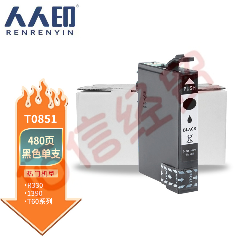 人人印 T0851墨盒黑色(適用愛普生R330墨盒T60 EPSON 1390打印機墨盒 85N T0851N T0856N) 自營
