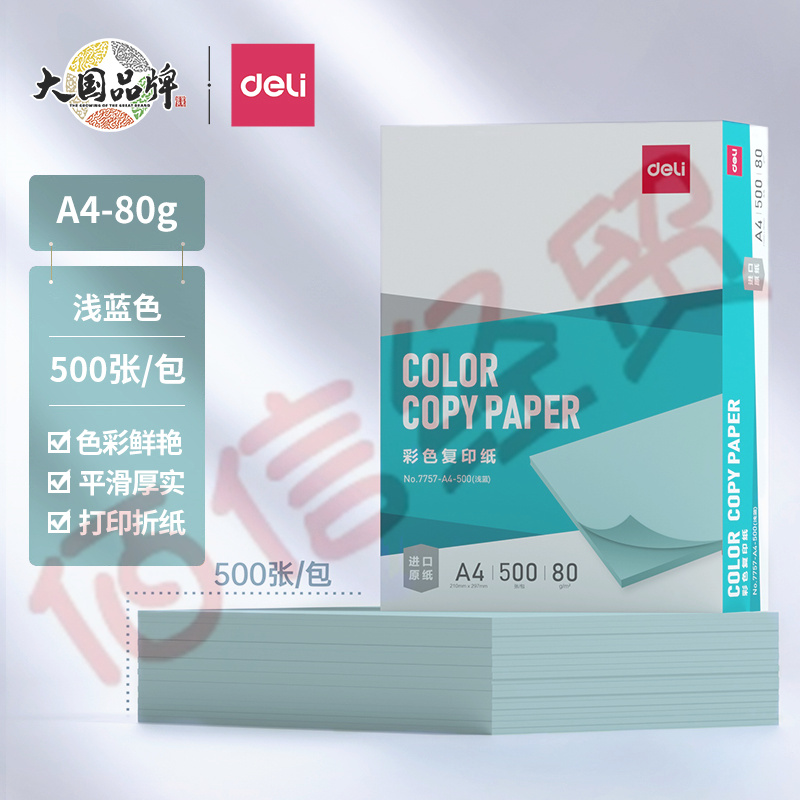 得力(deli)A4 80g 淺藍(lán)色彩紙復(fù)印紙 彩色非厚卡紙兒童手工紙剪紙打印紙 500張/包 7757-A4-500 自營(yíng)