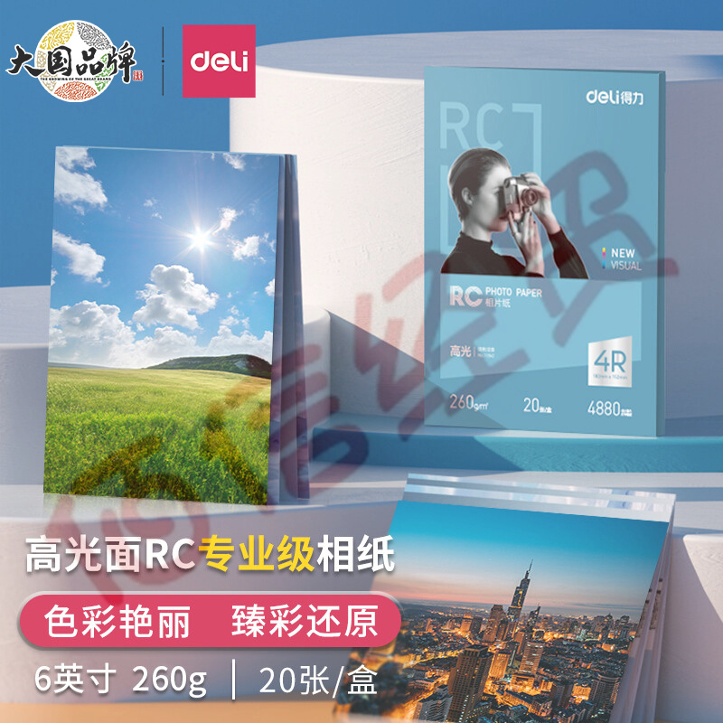 得力(deli)6寸 260g高光面RC專業(yè)相片紙 影樓專用照片打印紙 20張/盒 11842 自營(yíng)