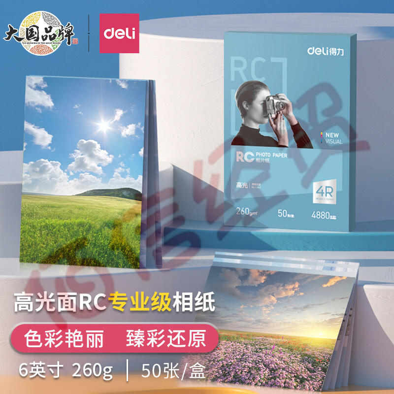得力(deli)6寸 260g高光面RC專業(yè)相片紙 影樓專用照片打印紙 50張/盒 11841 自營