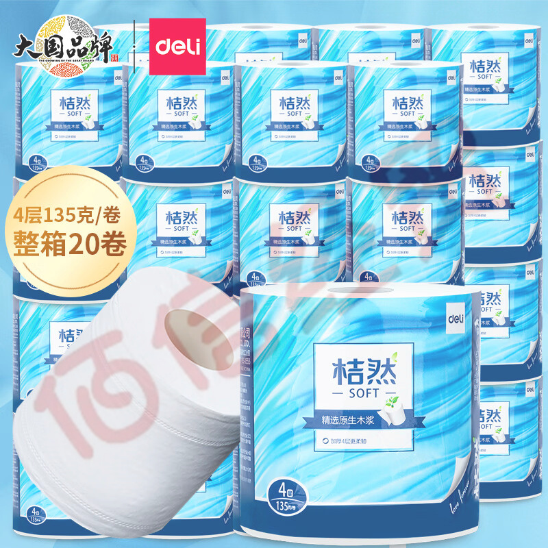 得力(deli)卷紙 經典4層*135克*20卷 易降解衛(wèi)生卷筒紙 桔然soft系列紙巾 整箱銷售 WJ4135-01 自營