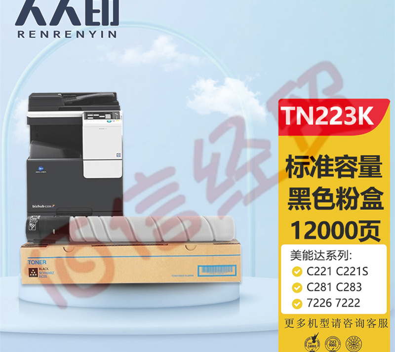 人人印 美能達TN223黑色墨粉盒 柯尼卡美能達TN224 C256 C266 C7222 C7226墨盒 柯美C226碳粉 (標準容量) 自營