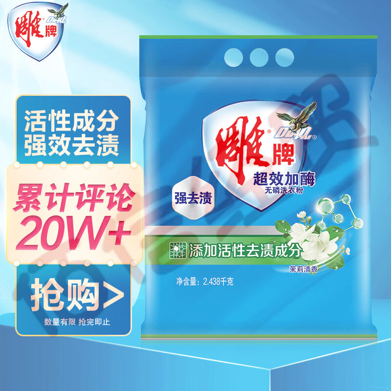 雕牌 超效加酶無磷洗衣粉2.438kg 茉莉清香 強(qiáng)效去漬 深層去污 白衣潔白 彩衣鮮艷(新老包裝隨機(jī)發(fā)貨)1袋價(jià)格 每箱4袋(整箱售) 自營(yíng)