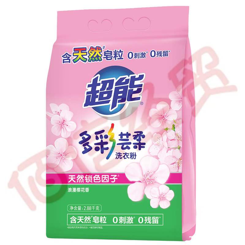 超能 多彩蕓柔洗衣粉2.88kg 含天然皂粒 添加天然鎖色因子 0刺激 0殘留 浪漫櫻花香 自營(yíng)