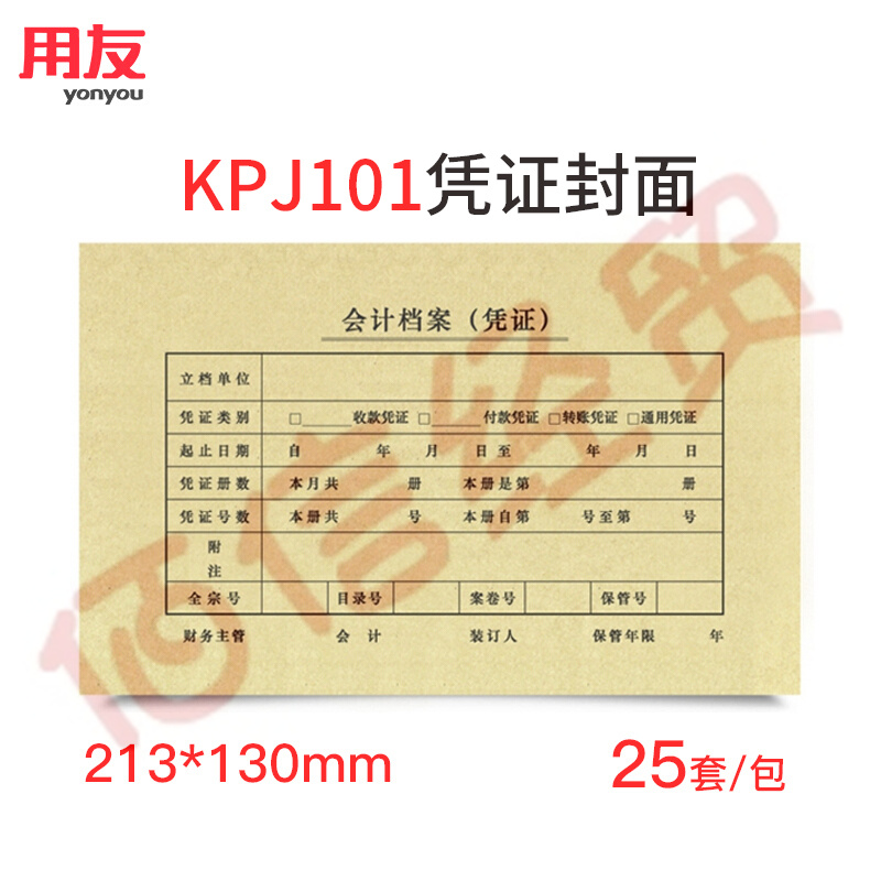 西瑪用友(UFIDA)SZ600136 KPJ101用友憑證紙封面封皮25套 213*130mm 會計記賬憑證封面 25套/包 (20包/箱)(單包價-整箱售-拍20組) 自營